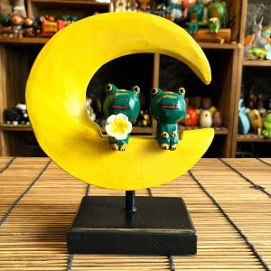 カエル 置物 木彫り オブジェ カップル アニマル アジアン雑貨 ペアムーン スタンド型