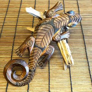 ヤモリ やもり ゲコ 壁掛け 木製 木彫り インドネシア製 縁起がよい 家を守る ブラウン アジアン インテリア 壁面装飾 ハワイ 守り神