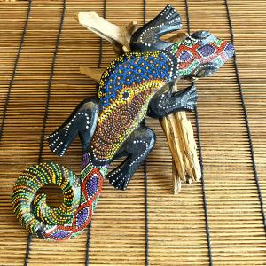 ヤモリ やもり ゲコ 壁掛け 木製 木彫り インドネシア製 縁起がよい 家を守る ドット カラフル アジアン インテリア 壁面装飾 ハワイ 守り神
