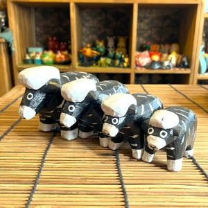 ヒツジ 置物 ブラック 4匹セット ファミリー 木彫り 木製 可愛いオブジェ 羊ファミリー ひつじ4匹セット