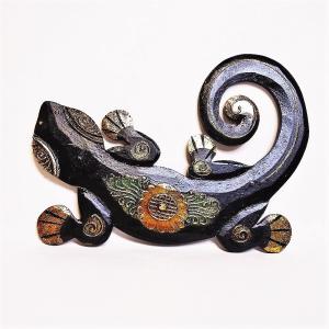 ヤモリ 壁掛け エスニック ボード 木製 縁起 インドネシア製 ゲコパネル Sサイズ ブラック