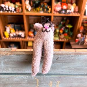 フェルト 可愛い ネズミ アニマル 冬 インテリア ぶらりんアニマル グレー ネパール 手作り