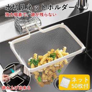 水切りネットホルダー 三角コーナー いらず 吸盤 浮かせる 折りたたみ 水切りネット50枚付き 生ゴミ 水切り ゴミ受け 排水口 台所 キッチン用品