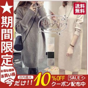 ニットワンピース 膝丈 長袖 ニット レディース チュニック ロングセーター ス 春 秋冬 新作 ニットソー ゆったり ハイネック カジュアル 着痩せ