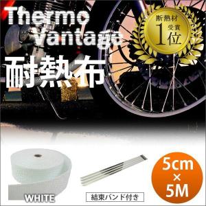 365日出荷対応 サーモバンテージ ホワイト 5cm×5M バイク マフラー エキマニ 耐熱布 放熱抑制 グラスファイバー 結束バンド付 thermo vantage 汎用品