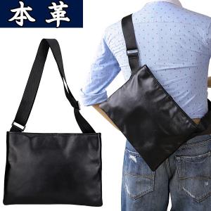 TIDING iPad対応 サコッシュ メンズ 本革 ショルダーバッグ 斜め掛け YKK ナッパレザー 2WAY 防水 薄型 自転車 鞄 ブラック