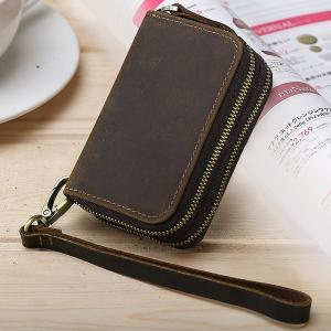 TIDING 本革 メンズ キーケース 車リモコンキー対応 キーホルダー カード入れ 牛革 ヌメ革 Wラウンドファスナー 経年変化 ダークブラウン ギフト