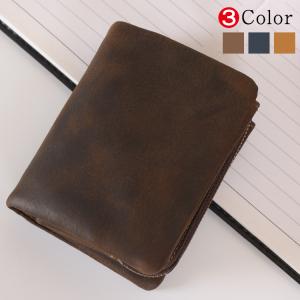 TIDING メンズ 二つ折り財布 本革 牛革 ラウンドファスナー 小銭入れ コインケース ハンドメイド ウォレット キャメル ギフト
