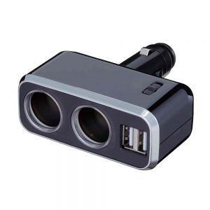 アウトレット品 車用 シガーソケット USB端子2口 コード長約1m 角度調節可能 2連 増設 充電器 スマホ タブレット 12V LED ナポレックス FIZZ-1011