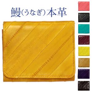 二つ折り財布メンズ レディース コンパクト 春財布 うなぎ皮 うなぎ革 男女兼用 プレゼント クリスマス 母の日 父の日 イールスキン (142-6)
