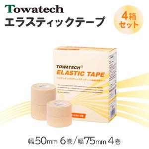 【4箱セット】トワテック エラスティックテープ 75mm×4.5m×4巻 エラスチック バンテージ テーピング 粘着性伸縮塗布包帯 伸縮 スポーツ 7.5cm 送料無料