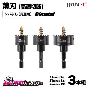 ホールソー21mm 27mm 33mm 3本組 薄刃(0.6mm) ツバなし 六角軸 バイメタルホールソー ホールソー薄刃
