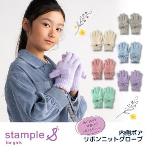 スタンプル stample リボンニットグローブ 手袋 おしゃれ 女の子 ラメ 防寒性 リボン ハート チャーム付き 70009