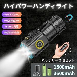 懐中電灯 強力LED LED 軽量 コンパクト 小型 充電式 ハンディライト クリップ付き マグネット付き type-c アウトドア 災害 登山 作業 リチウム電池 セット