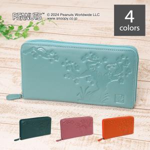 桜柄 スヌーピー スマホが入る長財布 正規ライセンス品 SNOOPY ピーナッツ PEANUTS ウッドストック 本革 財布 ピンク エメラルドグリーン オレンジ オリーブ