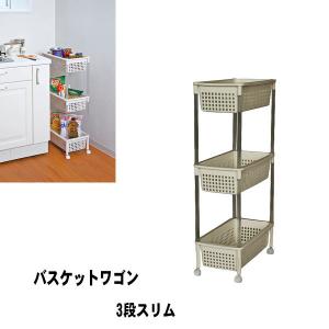 キッチンワゴン キャスター付き バスケット ワゴン 3段 スリム 国産 洗面台 隙間収納 省スペース スリムワゴン ホワイト 幅25cm おしゃれ