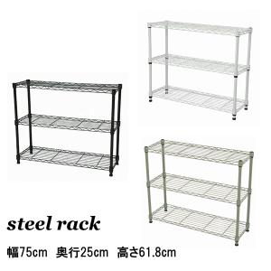 スチールラック 幅60 奥行25 3段 スリムラック メタルラック 収納棚 可動棚 アジャスター付き 省スペース ラック