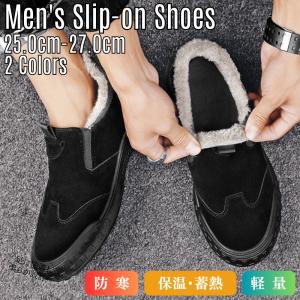ボアスリッポン メンズ 裏起毛 ドライビングシューズ スニーカー 防寒 秋冬 暖かい 保温 蓄熱 滑りにくい ブラック グレー