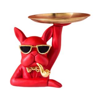 フレンチブルドッグ 置物 鍵収納ホルダー 鍵置き 小物置き 玄関 犬の置物 雑貨 インテリア フレブル グッズ (レッド)