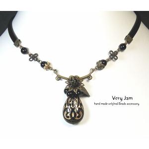 天然石パワーストーン BKゴールドプレクシーハート&ブラックローズ ハンドメイド革紐チョーカーvj