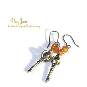 天然石パワーストーン 琥珀(アンバー)とアンティークキーチャームのピアスvj