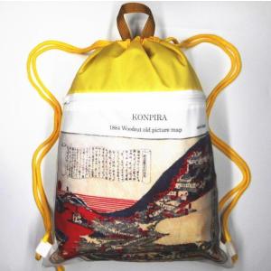 ナップ サック エコバッグ 日本製 金比羅絵(イエロー)ポケット付き