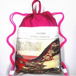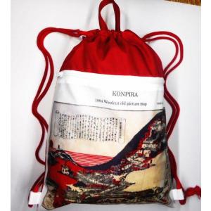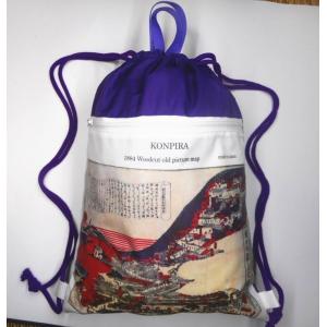 ナップ サック エコバッグ 日本製 金比羅絵(紫)ポケット付き