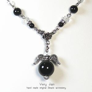 パワーストーン天然石 オニキスのプチ天使 ネックレスvj