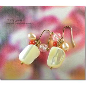 天然石パワーストーン マザーオブパール・水晶 タンブル ピアスvj