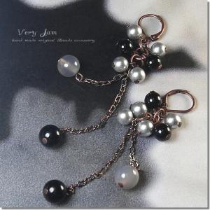 天然石パワーストーン オニキスパール・モノトーンピアスvj