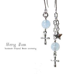 Holy night天然石“リバーストーン”アシンメトリーパワーストーンピアスvj