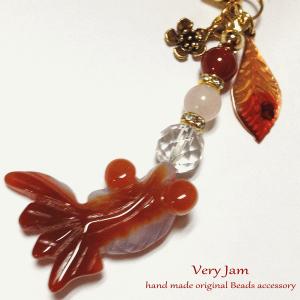 天然石パワーストーン 和風 和装小物 瑪瑙(めのう)金魚「朱色」帯飾りyvj