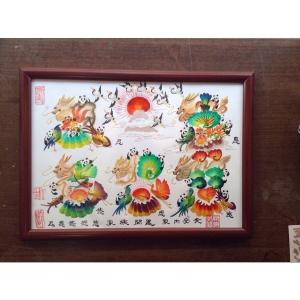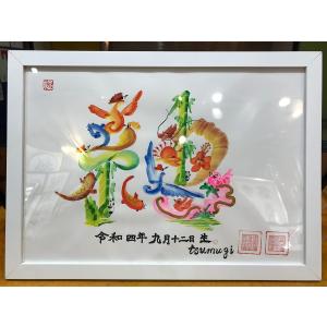 額付き開運風水花文字、お客様好きな文字を書きます、命名書 誕生日 結婚 開店 就職 米寿 新発売などに贈り物 プレゼント 中華街 お土産 最適最高