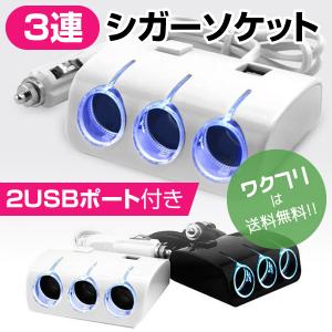 3連 シガーソケット 2USB USB 分配器 増設 スマホ スマートフォン 充電 ドライブレコーダー ドラレコ 照明 ライト イルミ 充電器 車載 急速充電 12V 24V