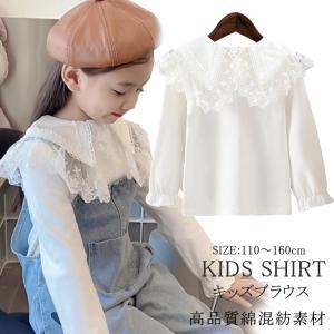 子供 キッズ ブラウス 女の子 シャツ おしゃれ リボン付 長袖 女の子 子ども ジュニア シャツ レースの襟 フォーマル ブラウス 白 入学式 卒園式 入園式 子供服