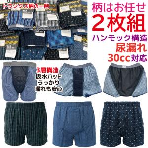 尿漏れパンツ 失禁パンツ 尿もれパンツ 男性用 男性 メンズ 紳士 前開き 吸水パッド パンツ 消臭 防臭 シニア お任せ柄 2枚組 セット トランクス ヤマダ