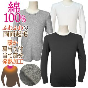 下着 インナー シャツ メンズ 男性用 肌着 防寒 暖かい 綿100% 長袖 ロングスリーブ 保温 肌に優しい 冬用 丸首 ロンT Tシャツ 敏感肌 当て付き 両起毛 ヤマダ