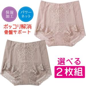 ショーツ パンツ パワーネット レース 1分丈 一部丈 1部丈 下着 肌着 骨盤サポート 保湿加工 2枚組 2P 綿混 レディース エレガント 女性 婦人用 ミセス ヤマダ