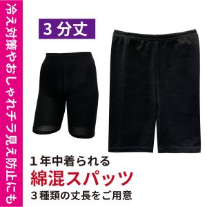 スパッツ レギンス 重ねばきパンツ 3分丈 レディース 綿 ストレッチ ブラック 婦人用 女性用 ヤマダ