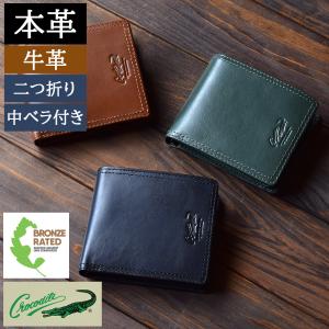 財布 メンズ 二つ折り 本革 中ベラ付き グリーン 緑 黒 軽量 2つ 薄い 小銭入れあり 牛 誕生日 プレゼント 敬老の日 ギフト 40 50代 60 70 クロコダイル 6cm083