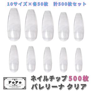 ネイルチップ バレリーナ クリア 500枚セット (10サイズ×50枚) 透明 付け爪 ネイルアート ジェル ネイル 練習