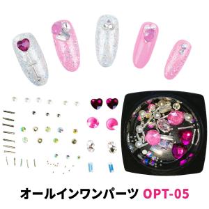 オールインワン ネイル パーツ セット パール メタル リング スタッズ シルバー クリスタル ピンク ハート ラインストーン MIX OPT-05