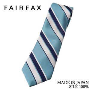 フェアファクス FAIRFAX ネクタイ ビジネス ストライプ ターコイズブルー シルク100% 日本製 メンズ レジメンタルタイ |入学 就職祝い プレゼント 結婚式