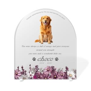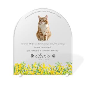 【ペットメモリアル】ペット位牌 犬 猫 名入れ おしゃれアクリルプレート オーダーメイド デザイナー仕上げ 日本製 (クリア, ミモザ)