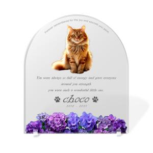 【ペットメモリアル】ペット位牌 犬 猫 名入れ おしゃれアクリルプレート オーダーメイド デザイナー仕上げ 日本製 (クリア, アジサイ)