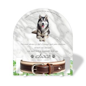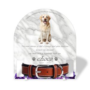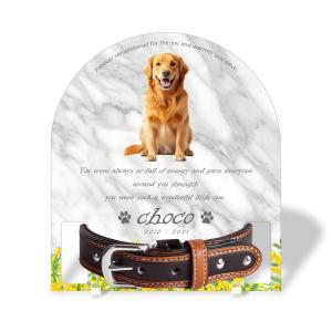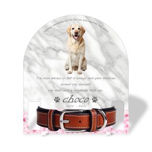 【ペットメモリアル】ペット位牌 犬 猫 名入れ おしゃれアクリルプレート オーダーメイド 首輪タイプ 日本製 (ミモザ, 大理石調ホワイト・首輪大)