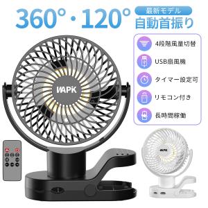 扇風機 卓上扇風機 DCモーター 360°自動回転 リモコン付き 充電式 クリップ型 静音 急速充電 超静音 大風量 熱中症対策 ファン 5000mAh