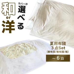 【夏布団セット】レンタル布団 掛け布団 敷き布団 3点セット (1〜6泊) 掛け布団と敷き布団と枕の3点にシーツとカバーが付いたセット