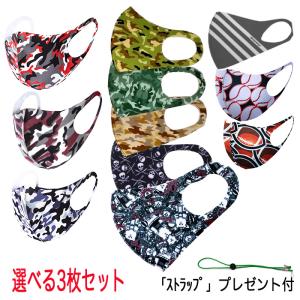 マスク 洗える ファッションマスク 3枚セット 大人用 立体 迷彩 カモフラ ライン入り メンズ 個性派マスク おしゃれ 春 夏 秋 冬 年中使える