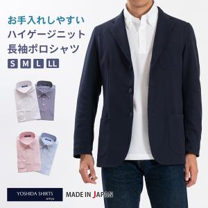 ポロシャツ 長袖 メンズ 日本製 吸水速乾 ビジネス 鹿の子 ワイドカラー 白 ホワイト ネイビー サックス 黒 ブラック SPKB25-096